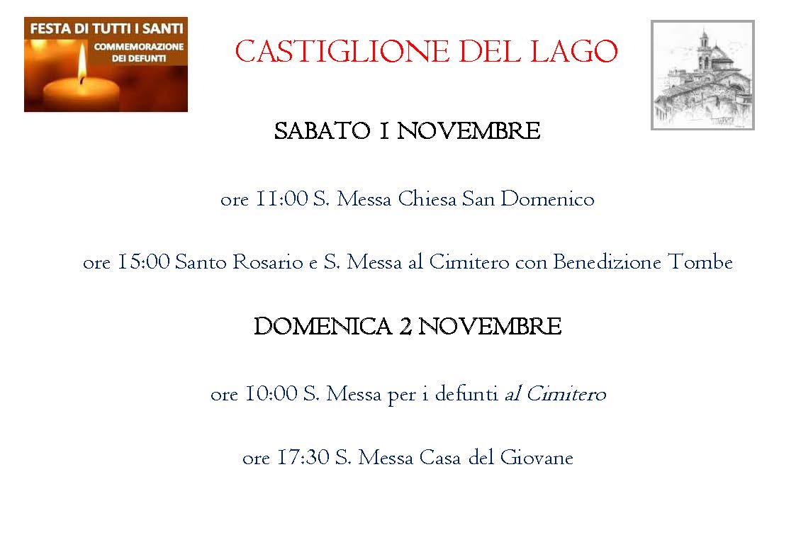CELEBRAZIONI PER LA FESTA DI TUTTI I SANTI E LA COMMEMORAZIONE DI DEFUNTI